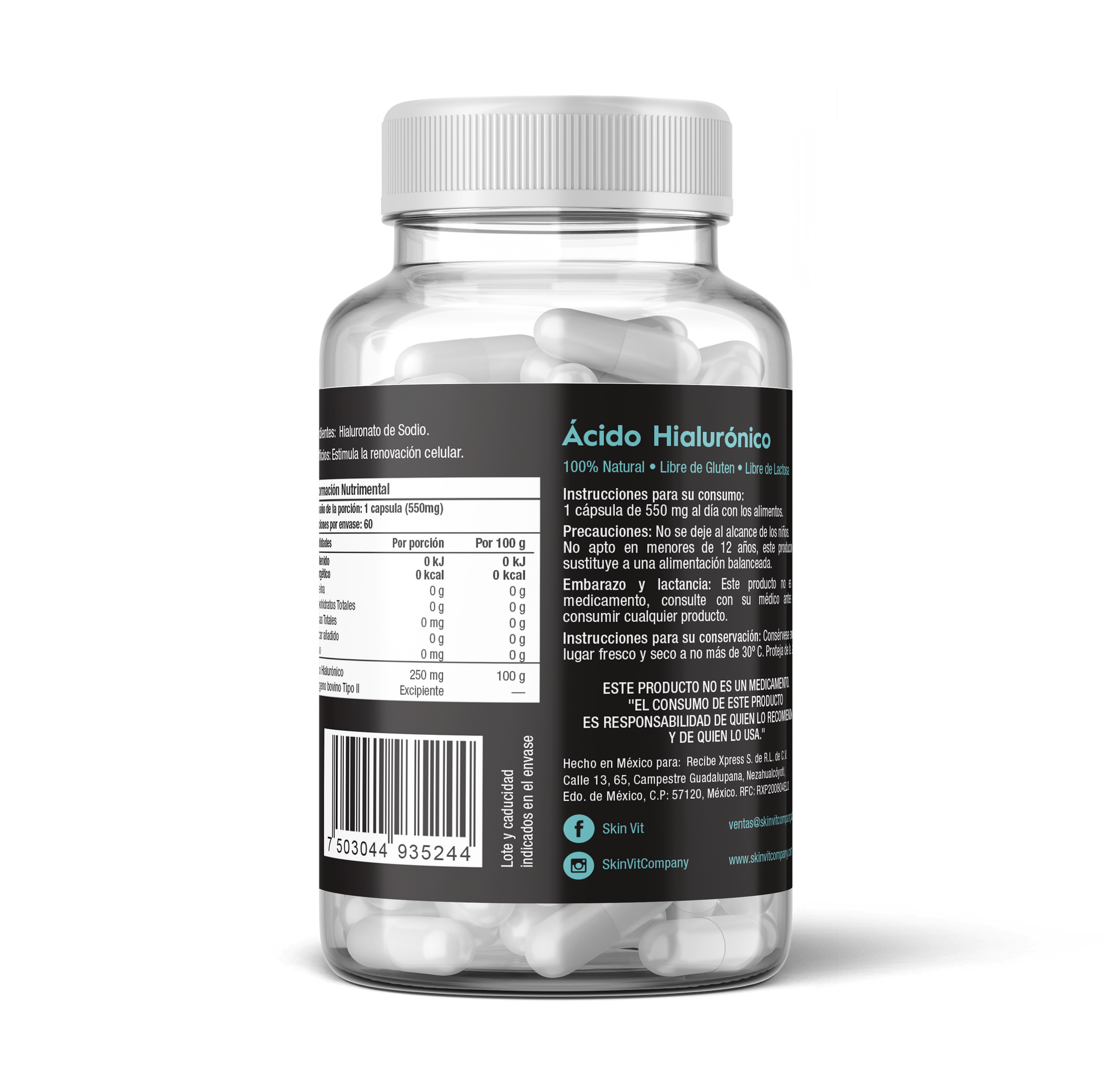 Este suplemento alimenticio de Skin Vit se caracteriza por contar con ingredientes importados de la más alta calidad. Su envasado se realiza en México, cumpliendo con los más altos estándares y la normativa sanitaria del país.
