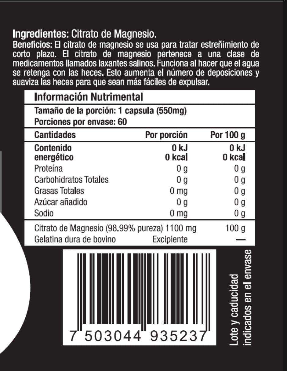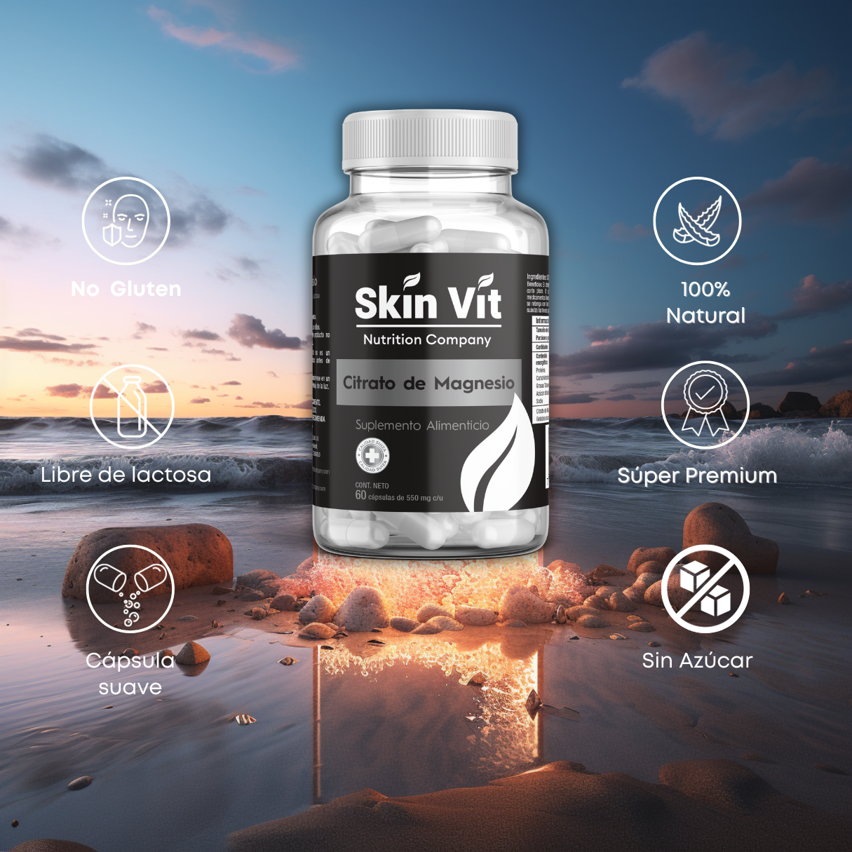 Skin Vit Nutrition Company - Super Premium Health presenta el Citrato de Magnesio en un formato de 60 Cápsulas.
