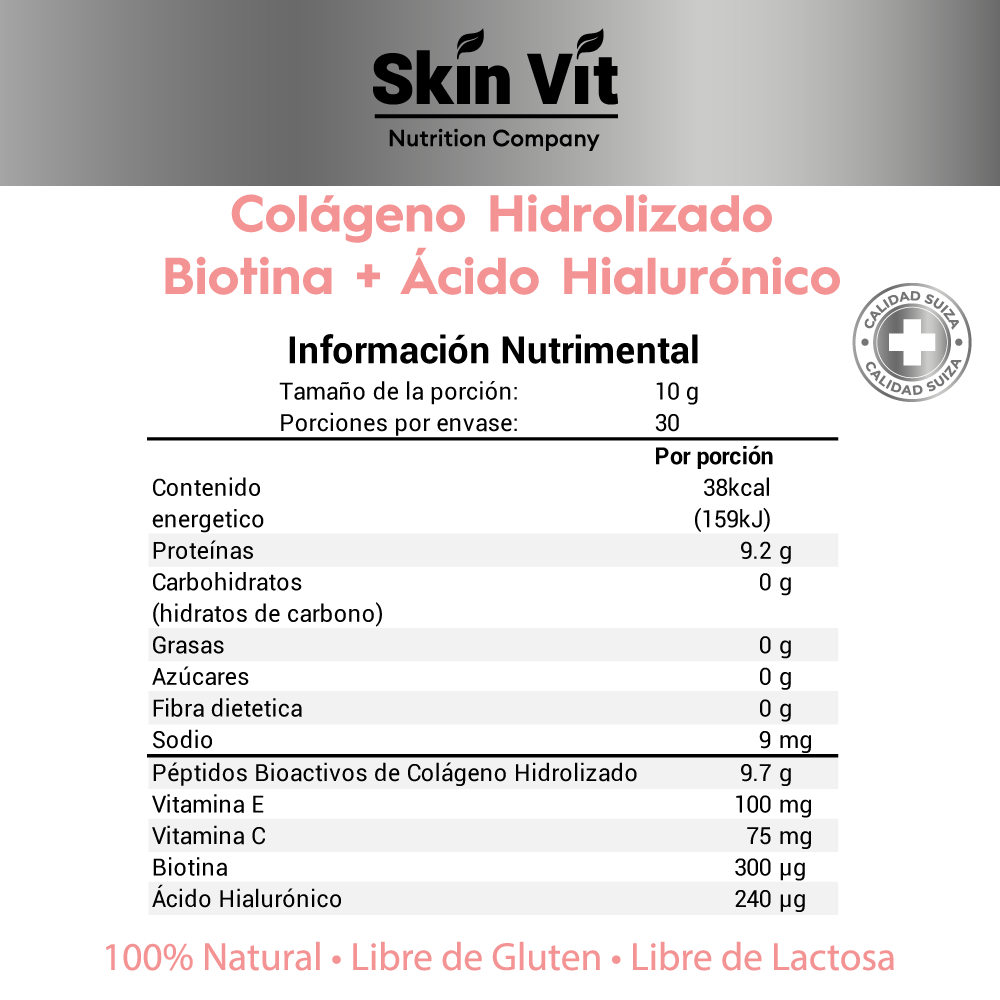 Colágeno HIdrolizado Biotina Acido Hialuronico 300 G Skin Vit