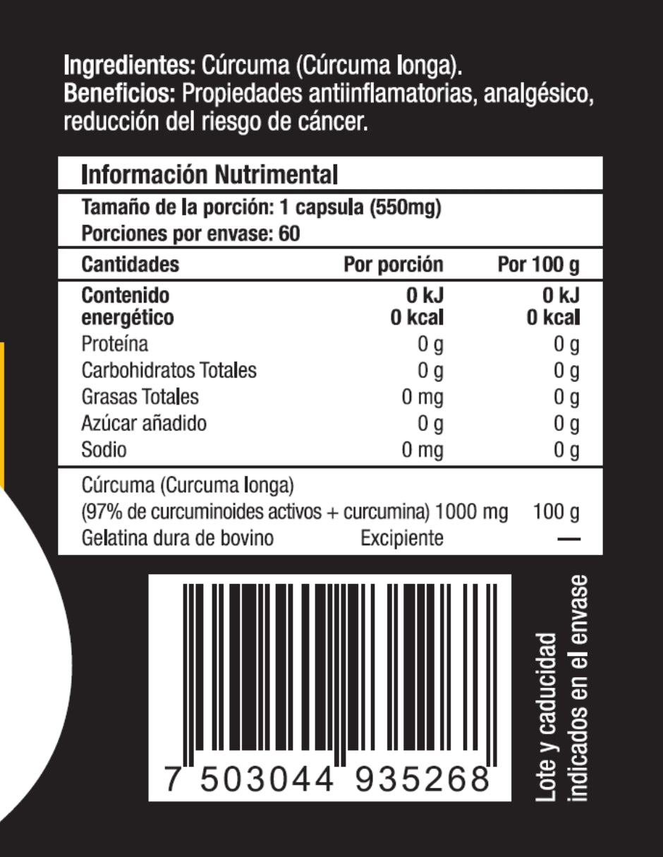 Skin Vit Nutrition Company - Super Premium Health presenta la Cúrcuma en un formato de 60 Cápsulas.