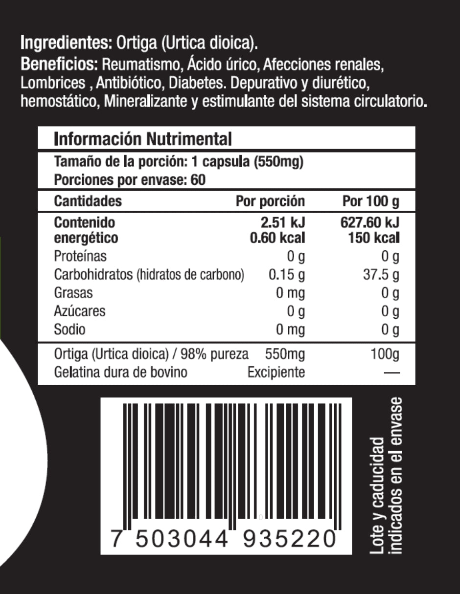 Skin Vit Nutrition Company - Super Premium Health presenta el Ortiga en un formato de 60 Cápsulas.