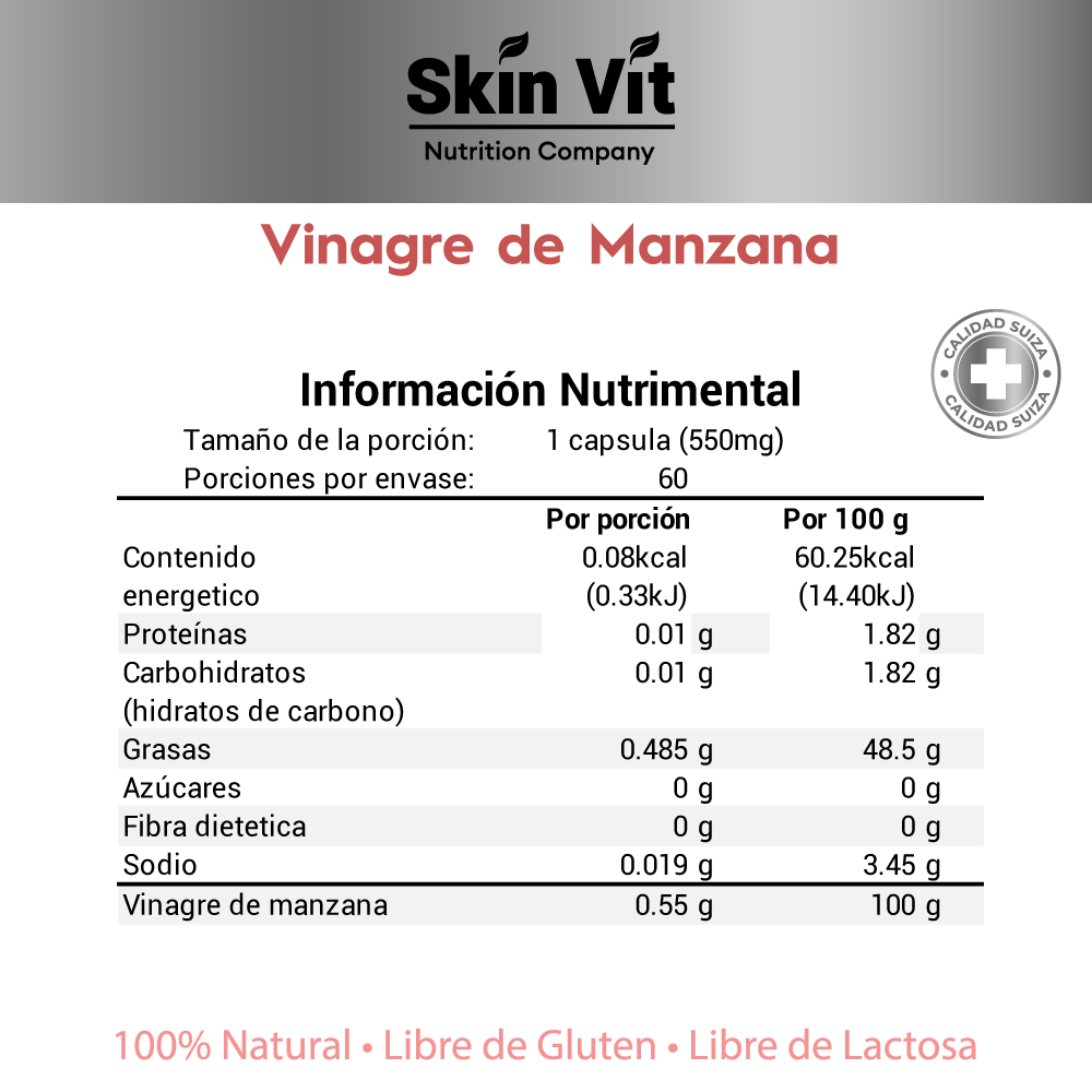 Vinagre de Manzana 60 Capsulas Skin Vit Nutrition Company
